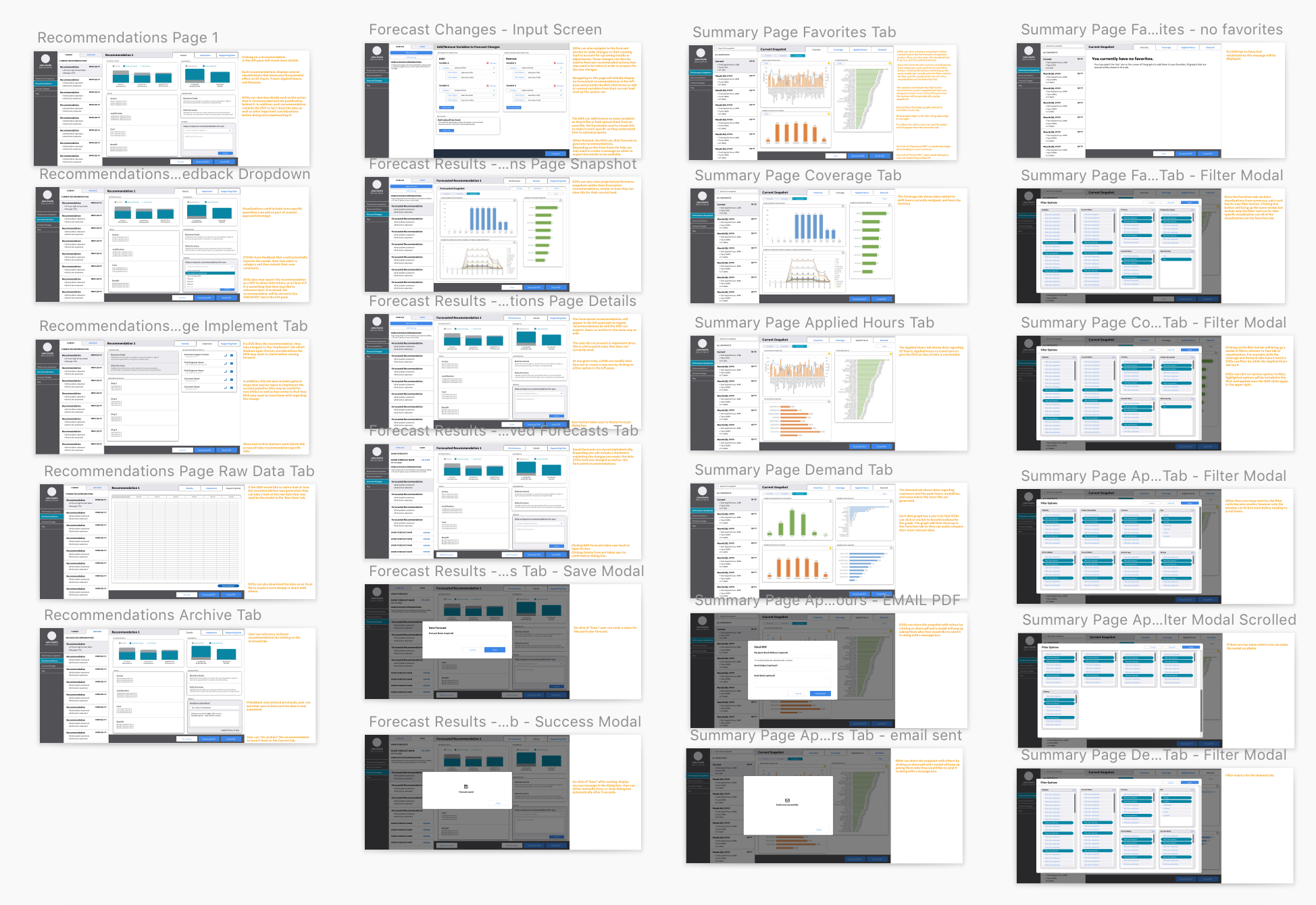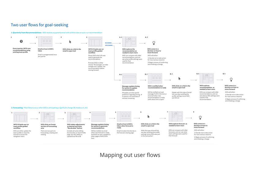 I started by mapping out the different flows a user might go through while using this new tool, and worked through how the different calculations generated by the Workforce Optimizer would be best presented to someone who is short on time and needs a concise delivery of information.
