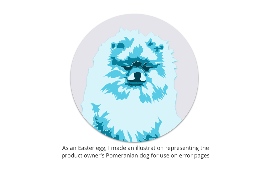 Because we spent a lot of time together discussing the intricacies of this project and saw each other’s pets on-screen during virtual meetings, I decided to make an illustration of the product owner’s Pomeranian dog for use on error pages as an Easter egg.